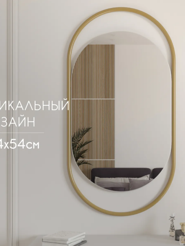 Зеркало «Muse». Артикул GMZ-02-1-1/2/3 Идеальная симметрия и простая изысканность ар-деко в виде овального настенного зеркала в металлической раме способны дополнить интерьер, выполненный в любом стиле, начиная от винтажного и заканчивая авангардным. Зеркальное полотно является продукцией известного бельгийского производителя AGC, который славится непревзойдённым качеством своих зеркал. Идеально подходит для ванной комнаты или спальни.Характеристики:– профиль рамы круглый, диаметром 20 мм; – габариты – 1040х540х20 мм; – размер зеркального полотна – 800х500 мм, толщина – 4 мм; – вес – 7 кг; – устойчивая матовая порошковая окраска; – возможные цвета – золотой, чёрный, белый; – саморезы для крепления к стене в комплекте; – гарантия – 1 год.