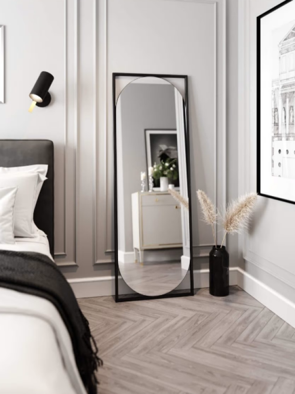Дизайнерское настенное напольное зеркало Glass Memory Lustrous в металлической раме черного цвета в Ейске